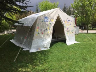 Afet zamanlarında insanların yaşam alanı olarak kullanımlarına uygun bir şekilde, iyi bir havalandırmanın yapılabilmesi için tasarlanan afet çadırı, tüm özellikleri ile insanların o anın şartlarında en iyi şekilde barınmalarına imkan vermektedir.